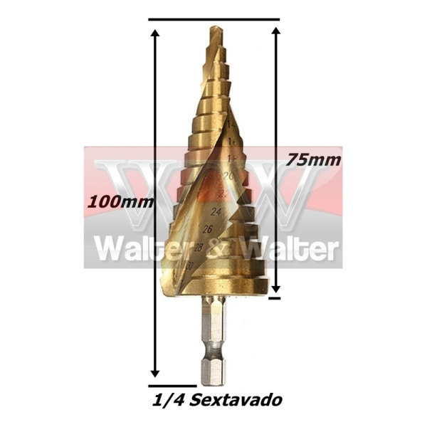 BROCA ESCALONADA HSS (AÇO RÁPIDO) COMREVESTIMENTO DE TITÂNIO.