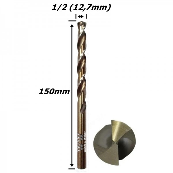 BROCA HSS- COBALTO 1/2 DIN 338. BROCA HSS- COBALTO HSS COBALTO DIN 338 PARA AÇO INOXIDÁVEL E CHAPAS. MATERIAL: HSS M35 COM 5% DE COBALTO. PROJETO: HASTE RETA. LIGA COM 5% DE COBALTO PARA MELHORAR A RESISTÊNCIA AO CALOR, QUE IRÁ EXECUTAR E SUPERAR AS BROCAS DE HSS CONVENCIONAIS QUE HÁ NO MERCADO , PRINCIPALMENTE SE O SEU TRABALHO ENVOLVE A PERFURAÇÃO DE METAIS RESISTENTES. PODE SER USADAS TAMBÉM PARA: MADEIRA - ACRÍLICO - ALUMÍNIO - PLÁSTICO - RESINA – PCI - PCB – FIBRA -AÇO – CHAPA GALVANIZADA E OUTROS METAIS FERROSO E NÃO FERROSO. PROJETO: HASTE RETA 1/2.