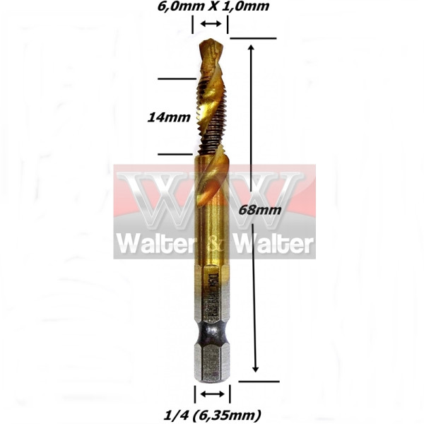 BROCA – MACHO M6MM X 1MM ENCAIXE SEXTAVADO ¼ (AÇO RÁPIDO HSS)