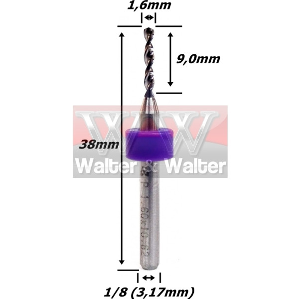 BROCA INTERIÇA METAL DURO 1,60MM X 9,0MM ÁREA DE CORTE X 38MM TOTAL X 1/8 HASTE