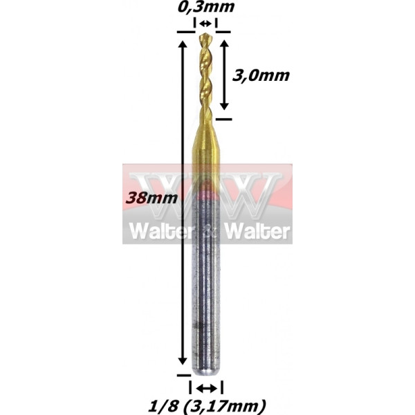 Broca Pcb Banho Titânio 0,3mm X 3,0mm Corte X 38mm Total X 3,17mm (1/8) Haste. (Ftr1803)