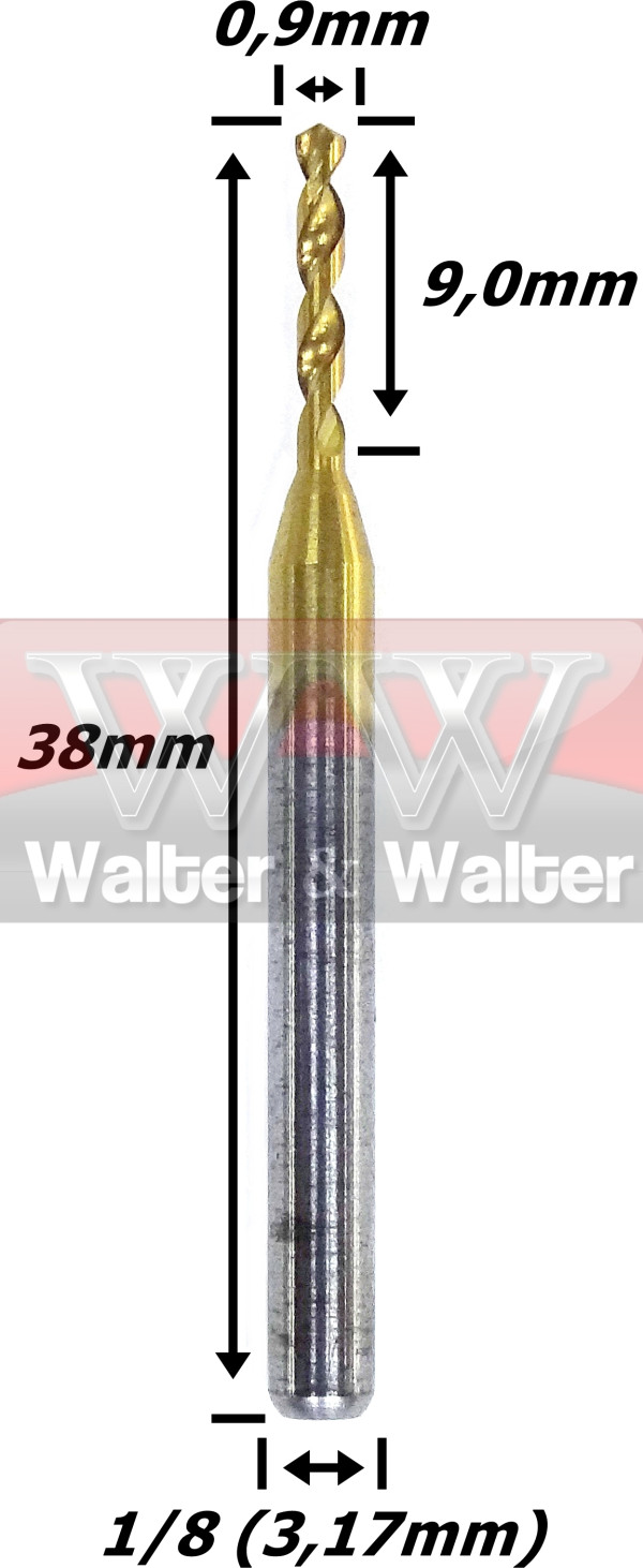 Broca Pcb Banho Titanio 0,9mm X 9,0mm Corte X 38mm Total X 3,17mm (1/8) Haste. (Ftr1808)