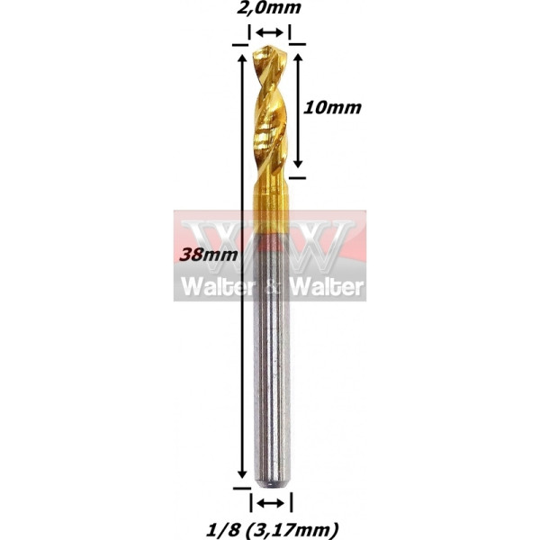 Broca Pcb Banho Titânio 2,0mm X 10mm Corte X 38mm Total X 3,17mm (1/8) Haste. (Ftr1809)