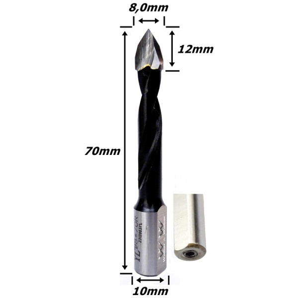 INDICADA PARA FUROS  PASSANTES TIPO Flecha UTILIZADOS EM MINIFIX , DOBRADICAS, RAFIX , SERRA COPO E OUTROS COMPATIVEL COM FURADEIRA, MULTIFURADEIRA, CNC E OUTRAS.