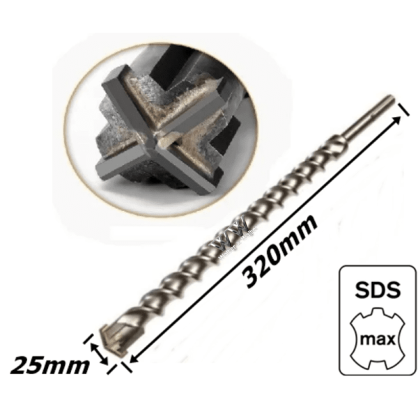 Broca Sds Max (Widea Cruzada) Ø25mm X 320mm. (Ftr0539)