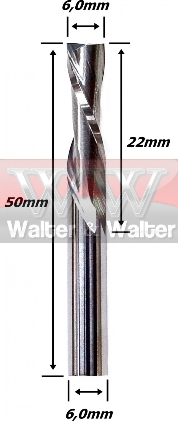 Fresa Down Cut 6,0mm (2c) X 22mm ÁRea De Corte X 50mm Total X 6,0mm Haste. (Ftr66)