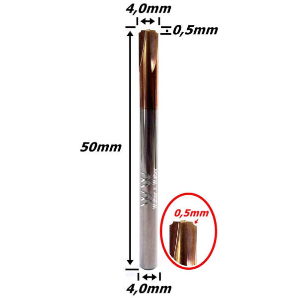 Fresa (4c) Côncava (HRC55) X 4,0mm X R 0,5mm X 50mm Total X 4,0mm Haste. (Ftr0967)