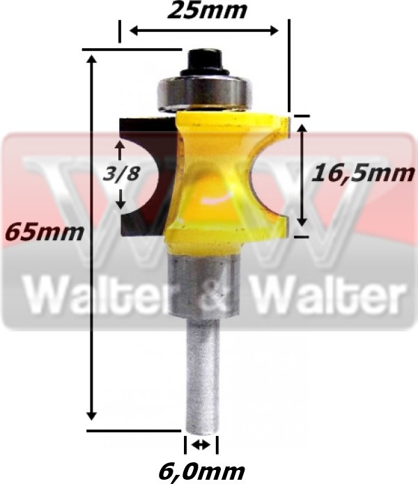 Produto: Fresa Arredondar Bastão Ø25mm X 9,5 (3/8) X 6,0mm Haste. (Ftr0308)