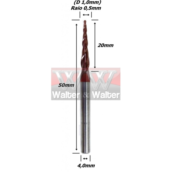 Produto: Fresa Cônica Esférica (Hrc55) 1,0mm X 20mm X 50mm Total X 4,0mm Haste. (Ftr11136)