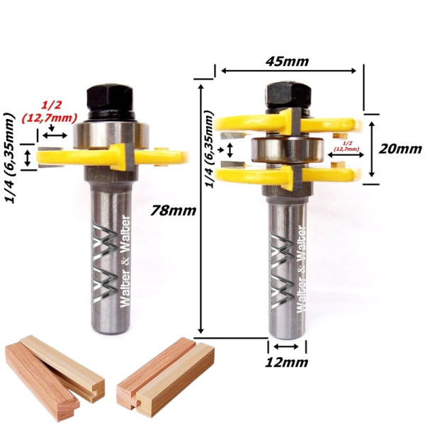 Fresa De Encaixe Macho E Fêmea Ø45mm 6,35mm (1/4) X 12mm Haste. (Ftr8100)