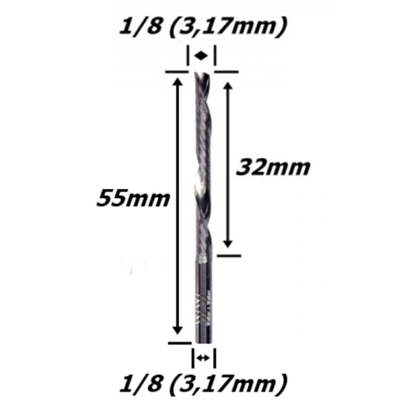 Fresa Down Cut 3,17mm (1/8) (1c) X 32mm X 55mm X 3,17mm (1/8) Haste. (Ftr2552)