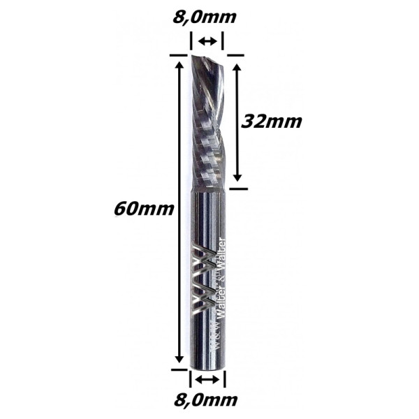 Fresa Down Cut 8,0mm (1c) X 32mm X 60mm X 8,0mm Haste. (Ftr7966)