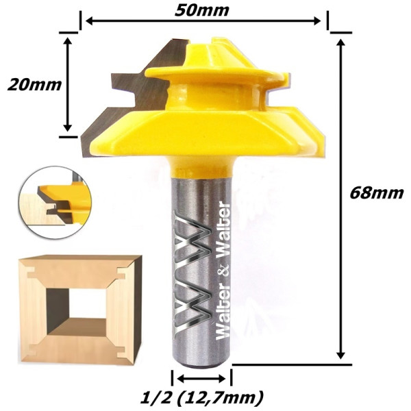Produto: Fresa Encaixe Gaveta (45°) Ø20mm X 50mm X 12,7mm (1/2) Haste. (Ftr2893)
