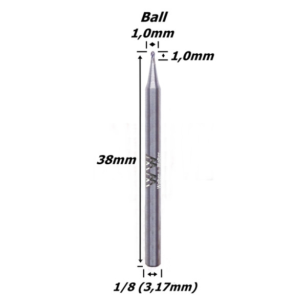 Fresa Esférica 1,0mm (R 0,5mm) X (2c) X 1,0mm X 38mm X 3,0mm. (Ftr187)