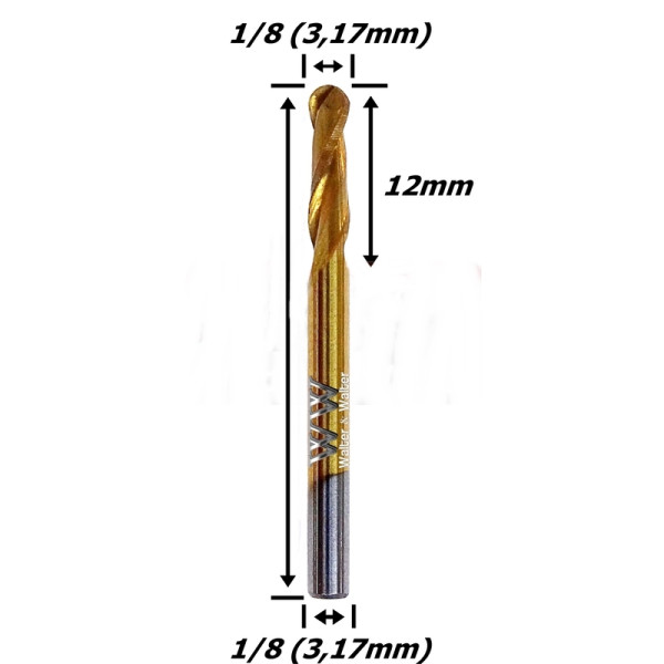 FRESA TOPO ESFÉRICA 3,17MM (1/8) (2 CORTES) X 12MM ÁREA DE CORTE X 38MM TOTAL X 3,17MM (1/8) HASTE.