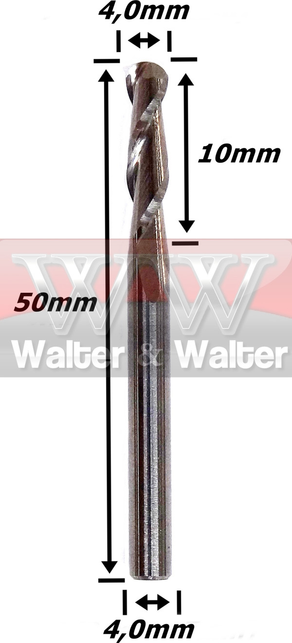 Fresa Esférica 4,0mm (R 2,0mm) X (2c) X 10mm X 4,0mm. (Ftr499)