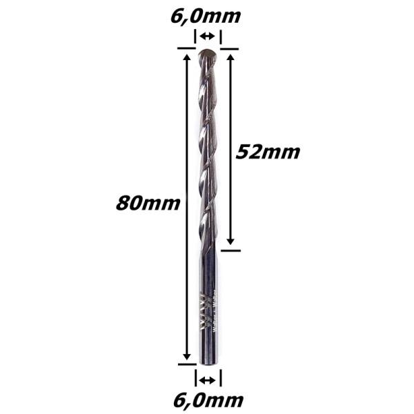 FRESA ESFÉRICA 6,0MM (2 CORTES) X 52MM ÁREA DE CORTE X80MM TOTAL X 6,0MM HASTE.