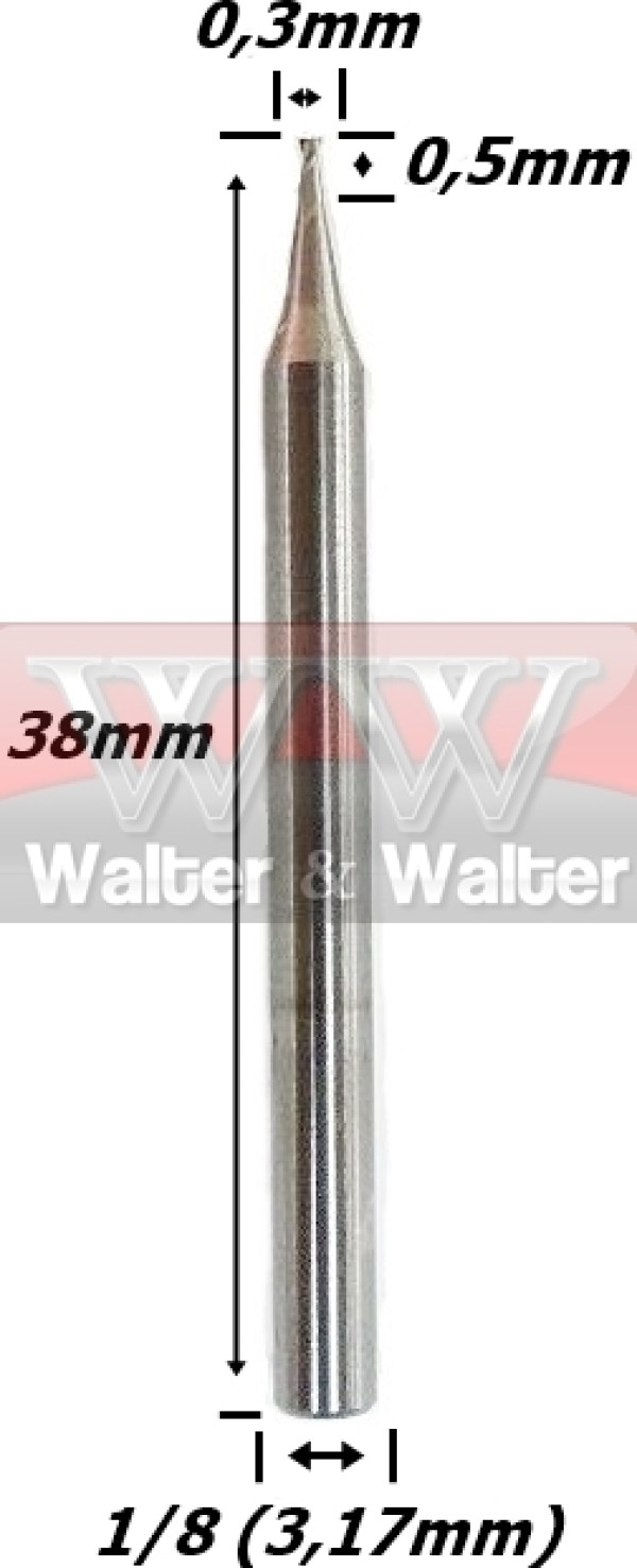 Produto: Fresa Helicoidal 0,3mm (2c) X 0,5mm X 38mm X 3,17mm (1/8). (Ftr2476)