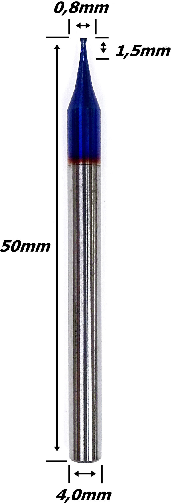 FRESA TOPO RETA DIÂMETRO 0,80MM (2CORTE HELICOIDAL ) X 1.5MM ÁREA DE CORTE X 50MM COMPRIMENTO TOTAL X 4,0MM HASTE