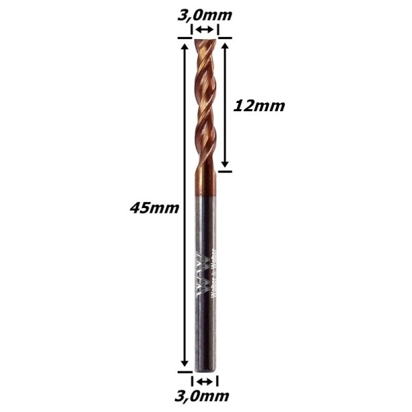 Fresa Helicoidal 3,0mm (2c) X 12mm X 45mm X 3,0mm. (Ftr1500)