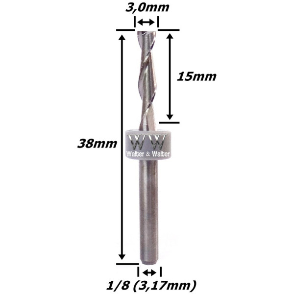 Produto: Fresa Helicoidal 3,0mm (2c) X 15mm X 38mm X 1/8. (Ftr21)