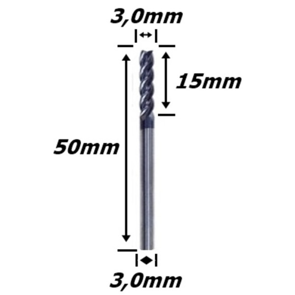 Produto: Fresa Helicoidal 3,0mm (Hrc45) (4c) X 15mm X 50mm X 3,0mm. (Ftr0618)