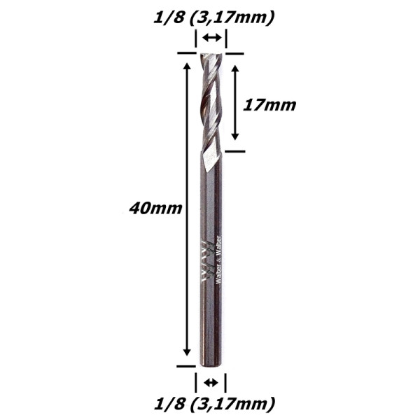 Produto: Fresa Helicoidal 3,17mm (1/8) (2c) X 17mm X 40mm X 1/8 (3,17mm). (Ftr0041)