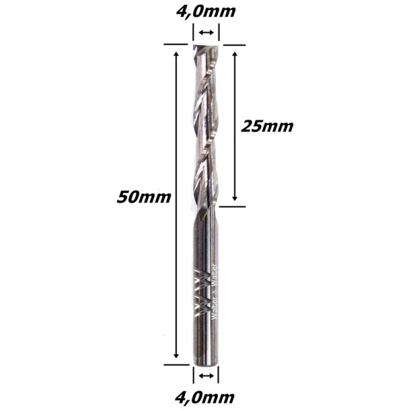 Fresa Helicoidal 4,0mm (2c) X 25mm X 50mm X 4,0mm. (Ftr0050)