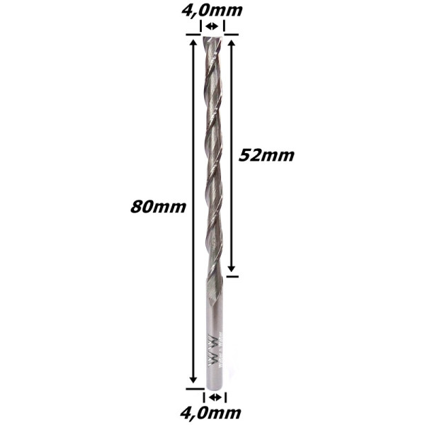 Fresa Helicoidal 4,0mm (2c) X 52mm X 80mm X 4,0mm. (Ftr824)
