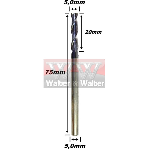 Produto: Fresa Helicoidal 5,0mm (2c) X 20mm X 75mm X 5,0mm. (Ftr0644)
