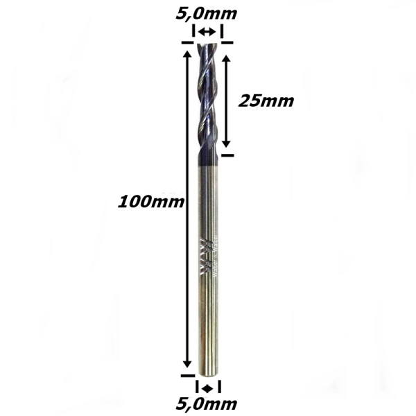 Fresa helicoidal 5,0mm (Hrc45) (2c) X 25mm X 100mm X 5,0mm. (Ftr1505)
