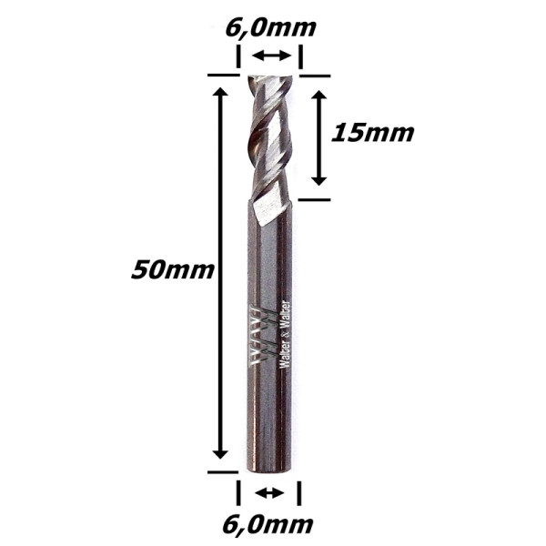 Fresa Helicoidal 6,0mm (2c) X 15mm X 50mm X 6,0mm. (Ftr71)