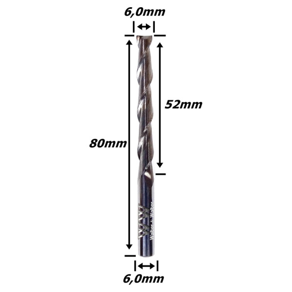 Fresa Helicoidal 6,0mm (2c) X 52mm X 80mm X 6,0mm. (Ftr0001)