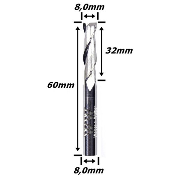 Fresa Helicoidal 8,0mm (2c) X 32mm X 60mm X 8,0mm. (Ftr01)