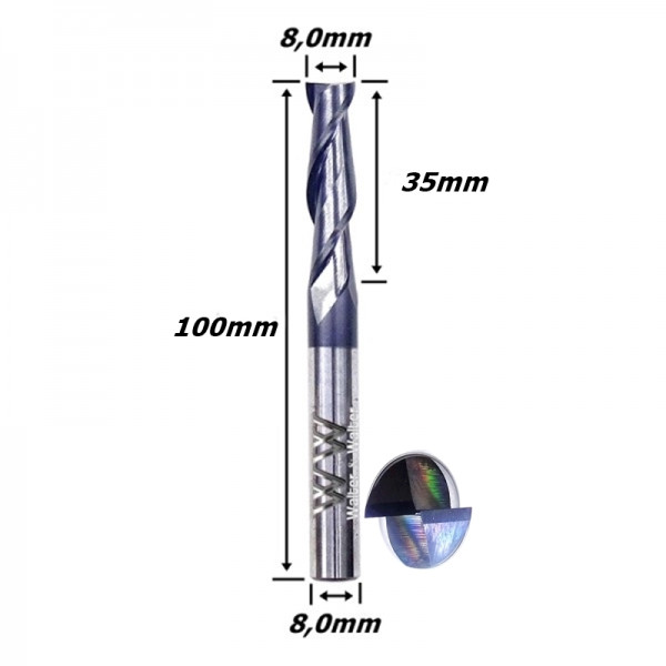 Produto: Fresa Helicoidal 8,0mm (2c) X 35mm X 100mm X 8,0mm. (Ftr1287)