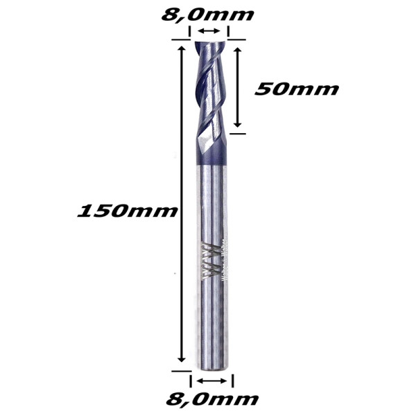 Fresa Helicoidal 8,0mm (2c) X 50mm X 150mm X 8,0mm. (Ftr8871)