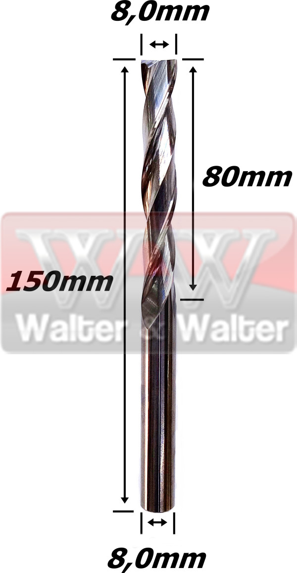 Fresa Helicoidal 8,0mm (2c) X 80mm X 150mm X 8,0mm. (Ftr1918)