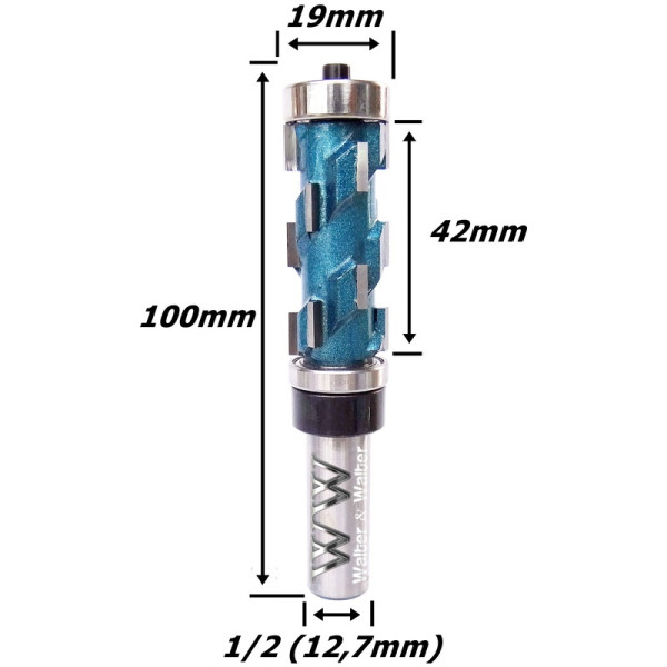 Produto: Fresa Helicoidal C/ Rolamento Superior E Inferior Ø19mm X 45mm Corte X 12,7mm (1/2) Haste. (Ftr0171)