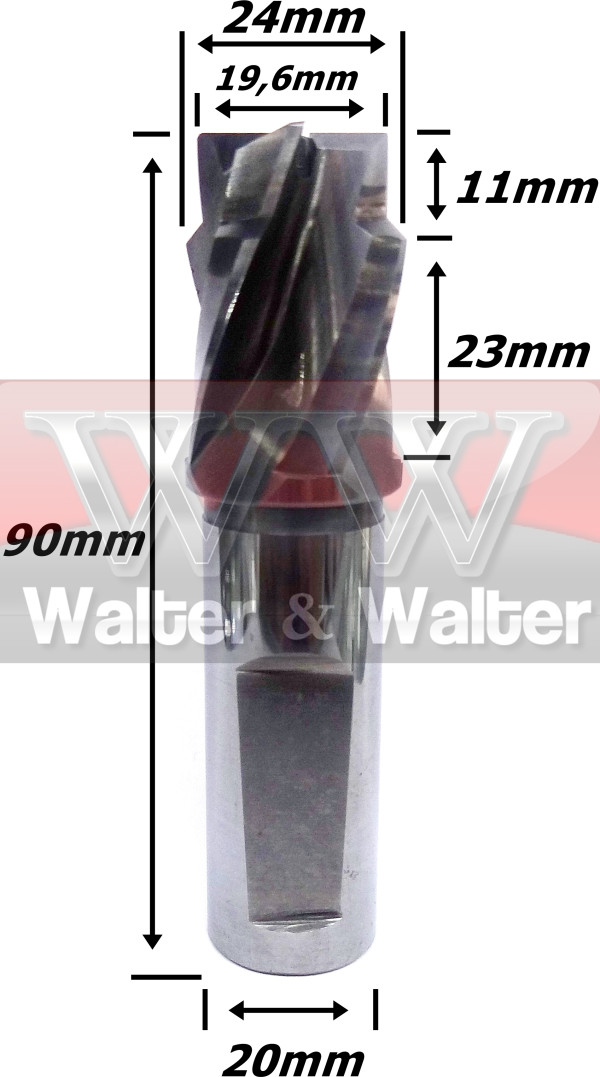 Fresa Helicoidal Ø19,6mm X 24mm (4c) X 34mm X 90mm X 20mm Haste. (Ftr582)