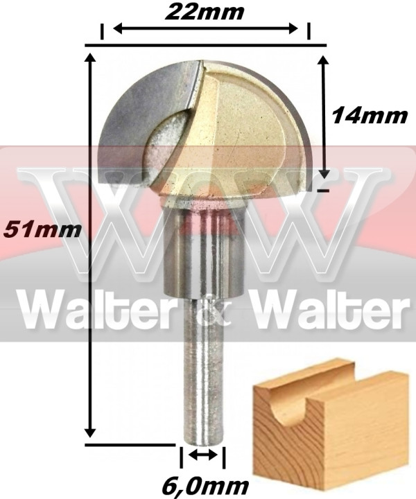 Produto: Fresa Meia Cana Ø22mm (11mm Raio) X 14mm De Profundidade X 6,0mm De Haste. (Ftr134)