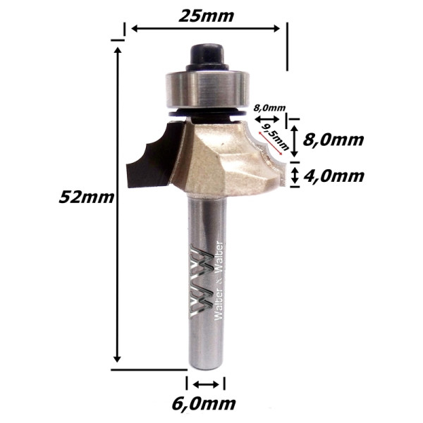 Fresa Modelagem Ø25mm X 8,0mm X 52mm X 6,0mm Haste. (Ftr2614)