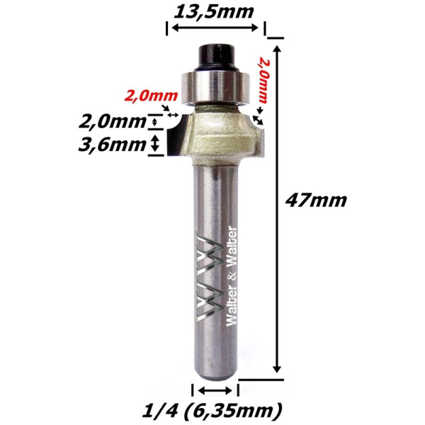 Fresa Ø13,5mm Raio 2,0mm X 47mm X 6,35mm (1/4) Haste. (Ftr2467)