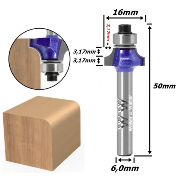 Fresa Ø16mm Raio 3,17mm (1/8) X 50mm X 6,0mm Haste. (Ftr2738)