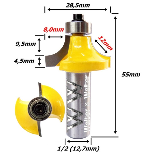 Fresa Ø28,5mm Raio 12mm X 12,7mm (1/2) Haste. (Ftr2812)
