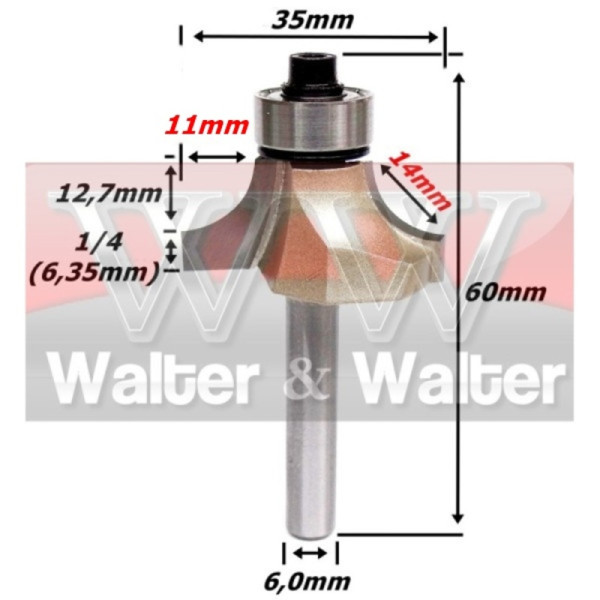 Fresa Ø35mm Raio 14,0mm X 60mm X 6,0mm Haste. (Ftr337)