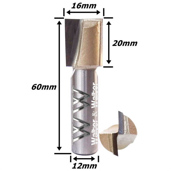 Fresa Reta 16mm x 20mm área de corte x 60mm total x 12mm haste