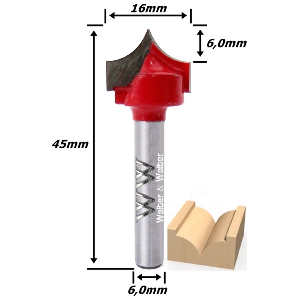 Fresa Pombo Ø16mm (6,0mm Raio) X 45mm Total X 6,0mm Haste. (Ftr107)