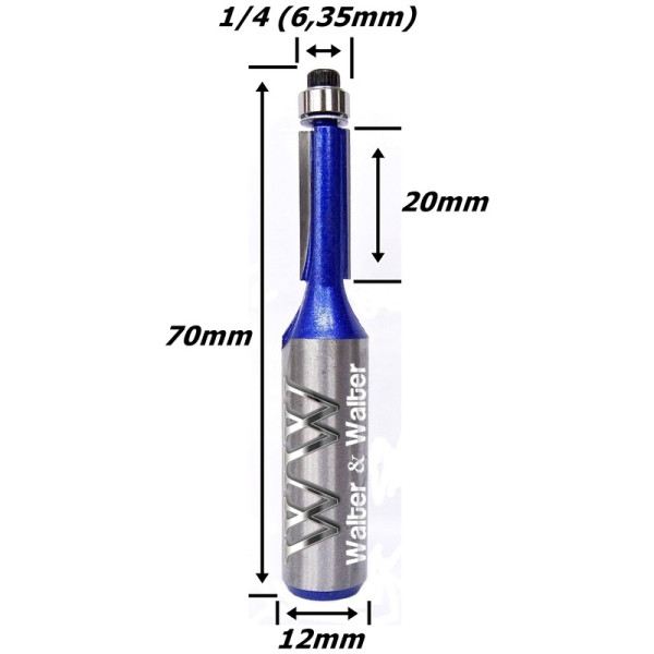 Produto: Fresa Reta C/ Rolamento Inferior 6,35mm (1/4) X 20mm Corte X 70mm X 12mm Haste. (Ftr0226)