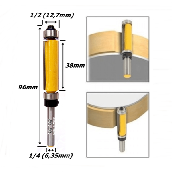 Fresa Reta C/ Rolamento Superior E Inferior Ø12,7mm (1/2) X 38mm X 96mm X 6,35mm (1/4) Haste. (Ftr3506)