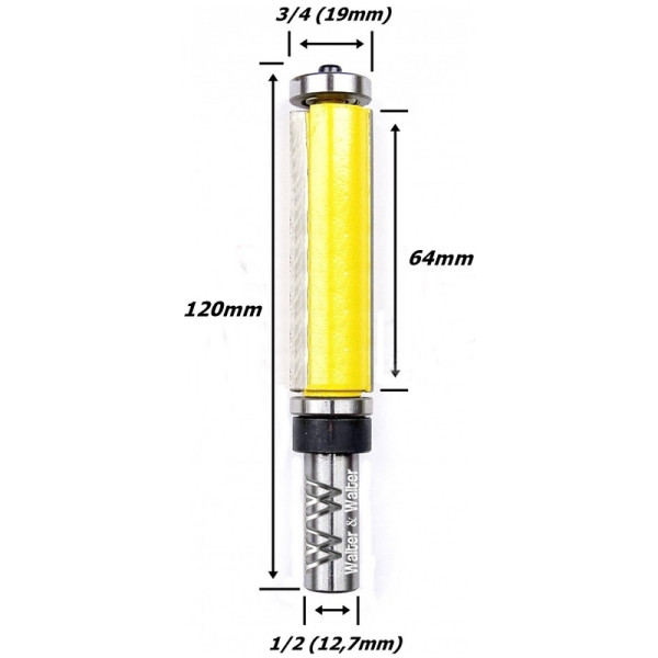 Produto: Fresa Reta C/ Rolamento Superior E Inferior Ø19mm (3/4) X 64mm Corte X 12,7mm (1/2) Haste. (Ftr2440)